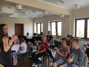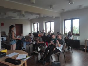 Gościem naszego obozu była Pani dyrygent Alicja Sobczak, która prowadziła część prób sekcyjnych, jak i całościowych. Pełniła również funkcję opiekuna wyjazdu. Oprócz zmagań z nowymi utworami, orkiestra odwiedziła Ośrodek Edukacji Przyrodniczej, gdzie zostaliśmy zapoznani z przyrodą i mieszkańcami Pszczewskiego Parku Krajobrazowego, po czym sprawdziliśmy swoją wiedzę podczas małego quizu. W Ośrodku Edukacji Przyrodniczej mieliśmy również możliwość popracowania z mikroskopami, gdzie mogliśmy np. przekonać się ile organizmów żywych znajduje się w kropli wody.